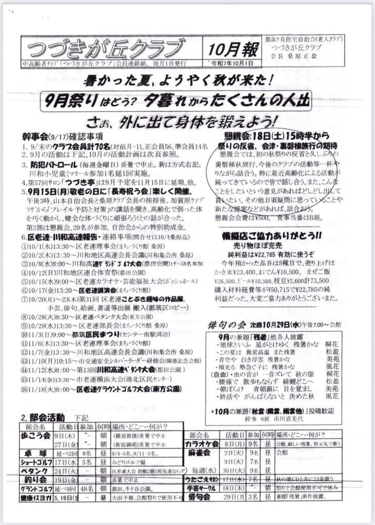 つづきクラブ10月報